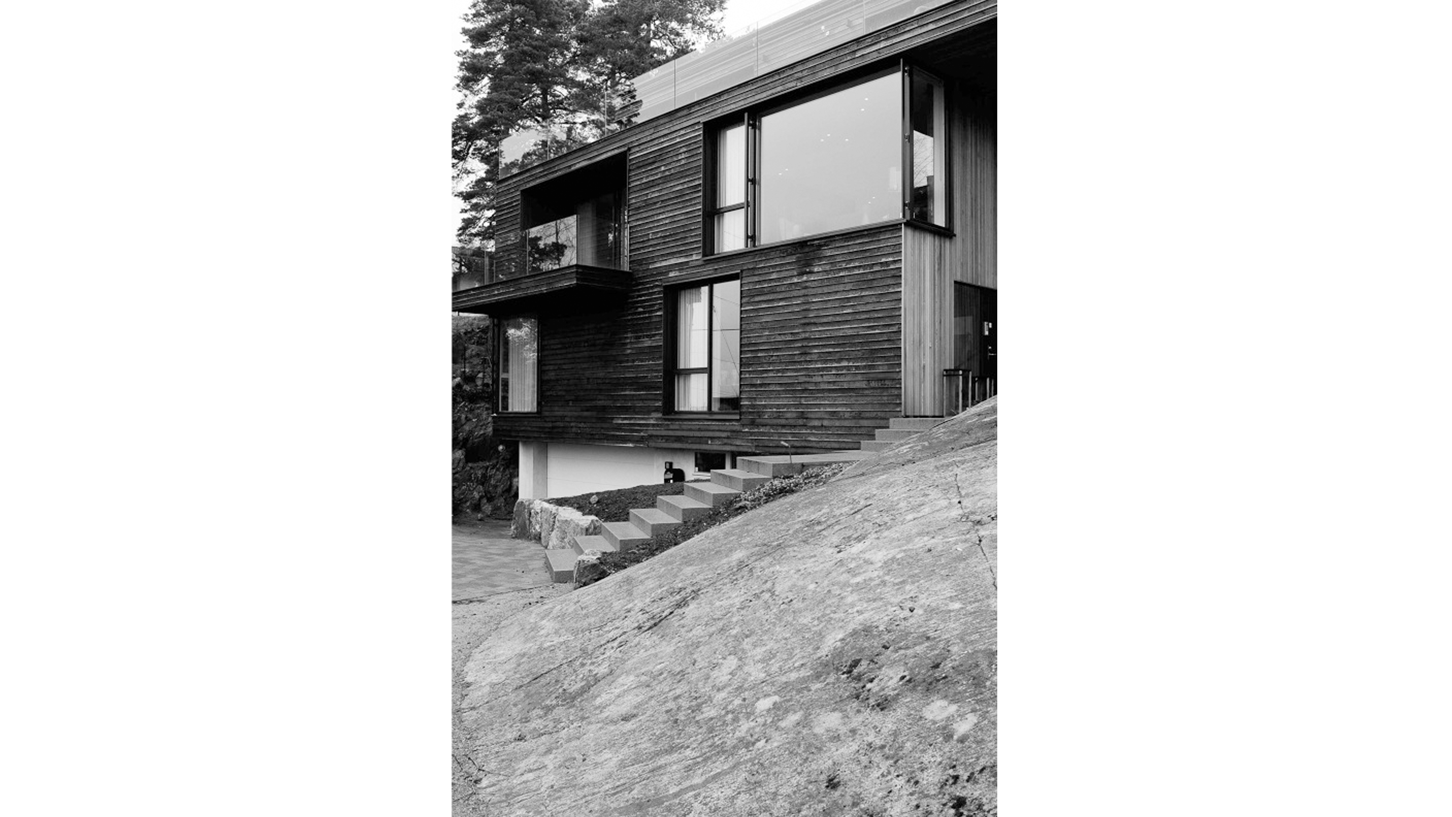 The single-family house is designed to follow the site's natural slope and retain the pine grove that is currently on site. The plot is a natural shelf in the Nordstrand slope. Building volume is uniform and relates to the line of sight in the slope's natural inclination.