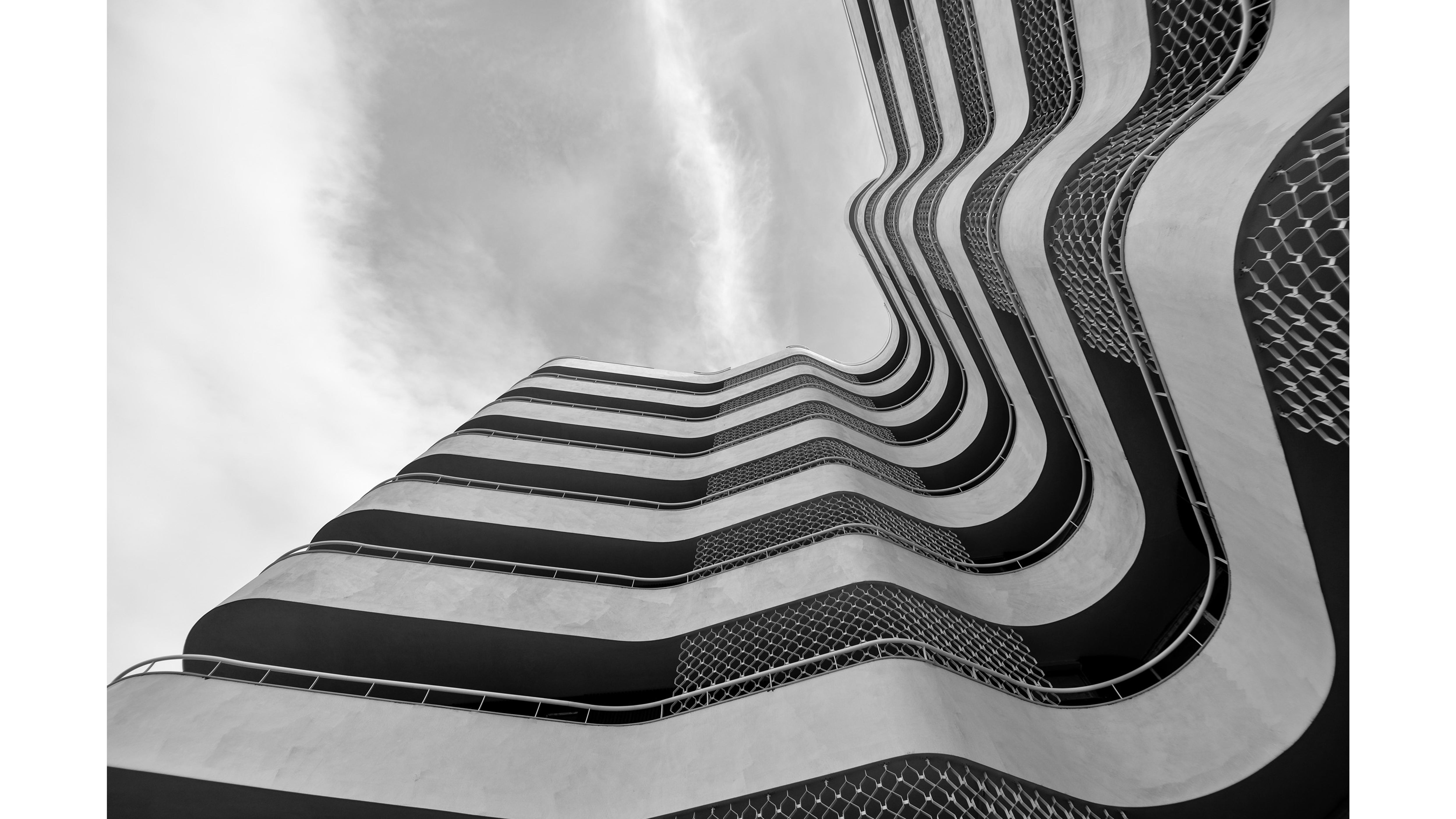 In order to extend the interior space of the apartment towards outside and the views, the wave-like structure is added to the regulated building volume from 2nd floor upwards. In this way, each unit is given a lavish and unique outdoor area/terrace, making it a defining architectural element of the project. While the inner facade of the building is clad in warm wooden ribs, outside is kept simple in white plaster with metal screens providing additional visibility protection to the apartment terraces.